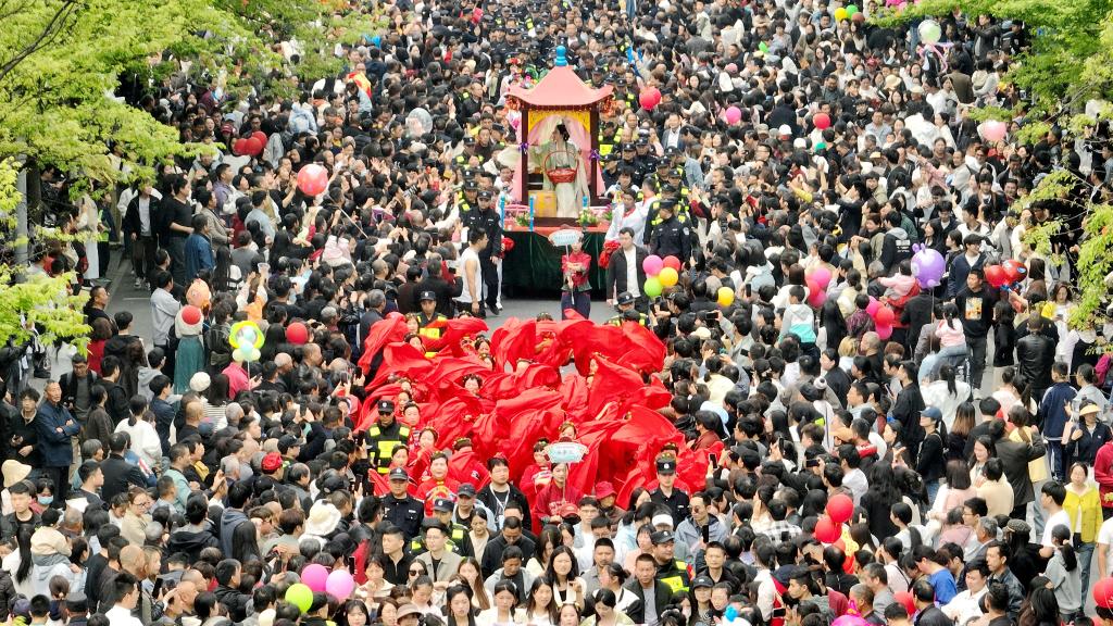 4月4日★★,人们在浙江省湖州市德清县新市古镇参加民俗巡游活动(无人机照片)不朽情缘官方★★。新华社发(谢尚国摄)